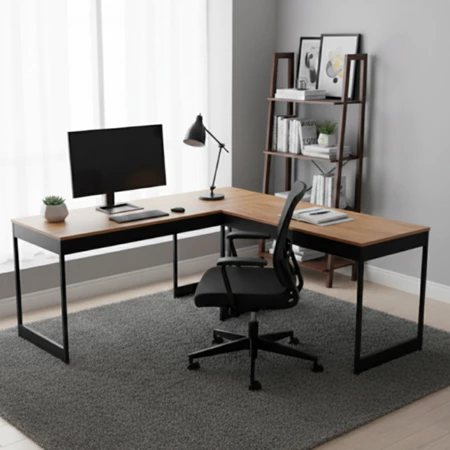 O formato em L é ideal para aproveitar ao máximo cada canto do escritório, criando uma área de trabalho ampla e ergonômica para aumentar sua produtividade.